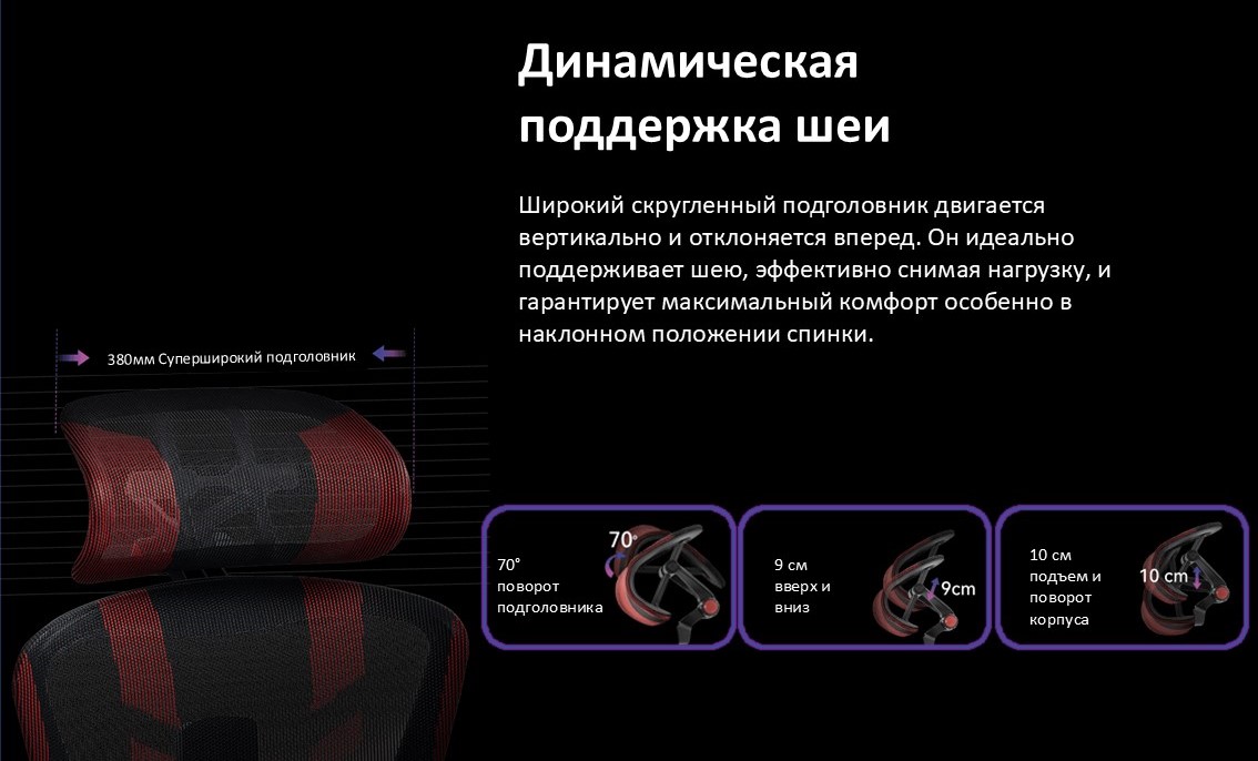 Кресло сконструировано с учетом особенностей строения позвоночника и позволяет настроить кресло индивидуально под определенного пользователя.