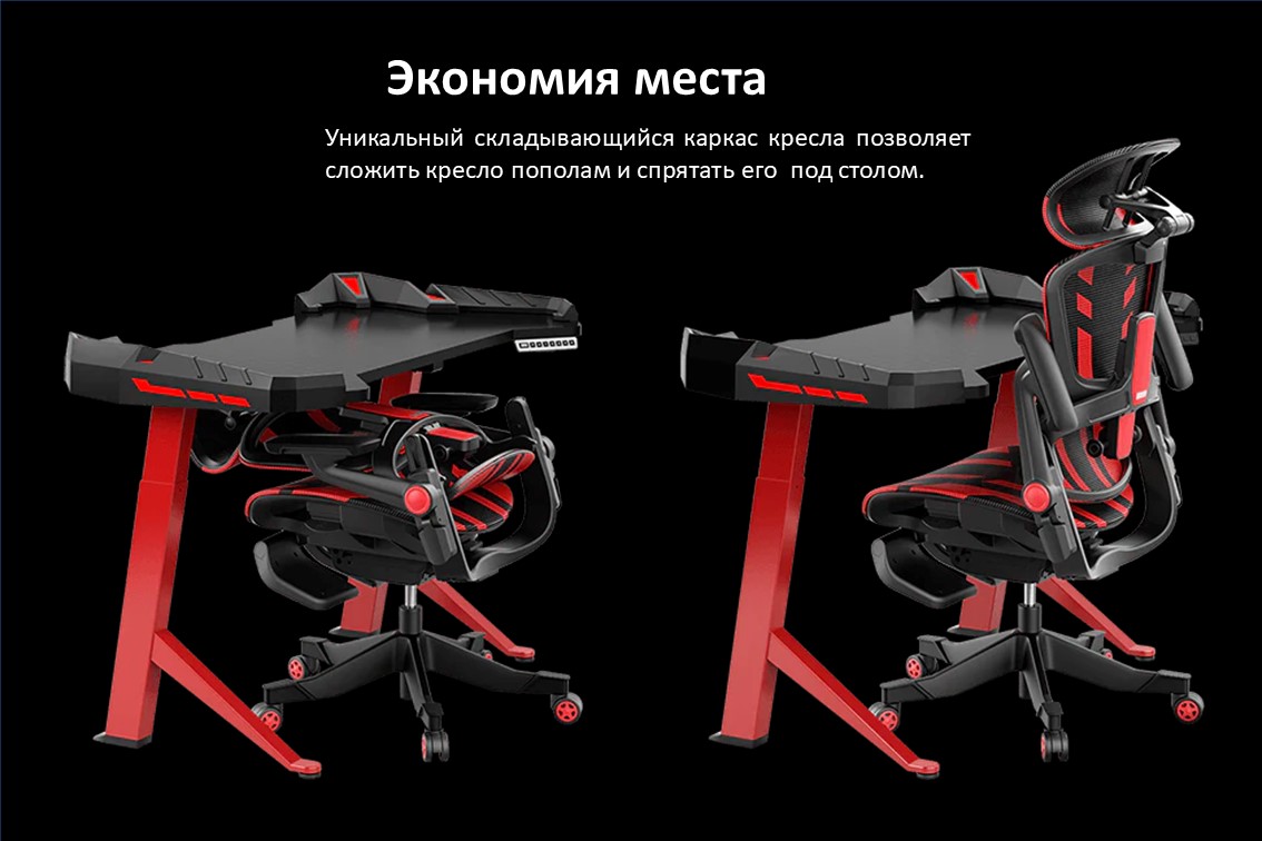 Если вам дорого каждый сантиметр, то воспользуйтесь функцией складывания кресла. Кресло можно сложить пополам и задвинуть под стол.