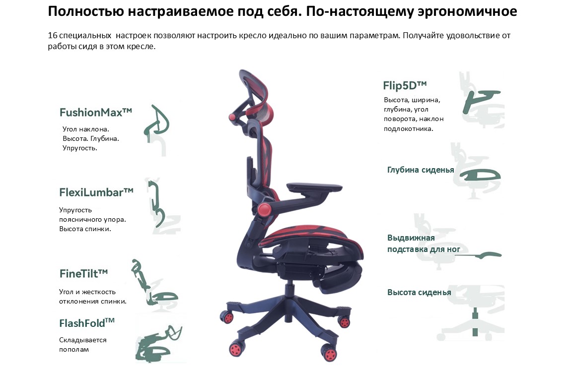 Ниже представлены 16 специальных настроек кресла, которые делают его уникальным.
