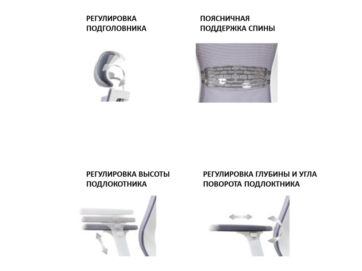 - регулируемый подголовник, который обеспечит мягкую поддержку вашей голове и разгрузку мышц шеи при длительной работе;