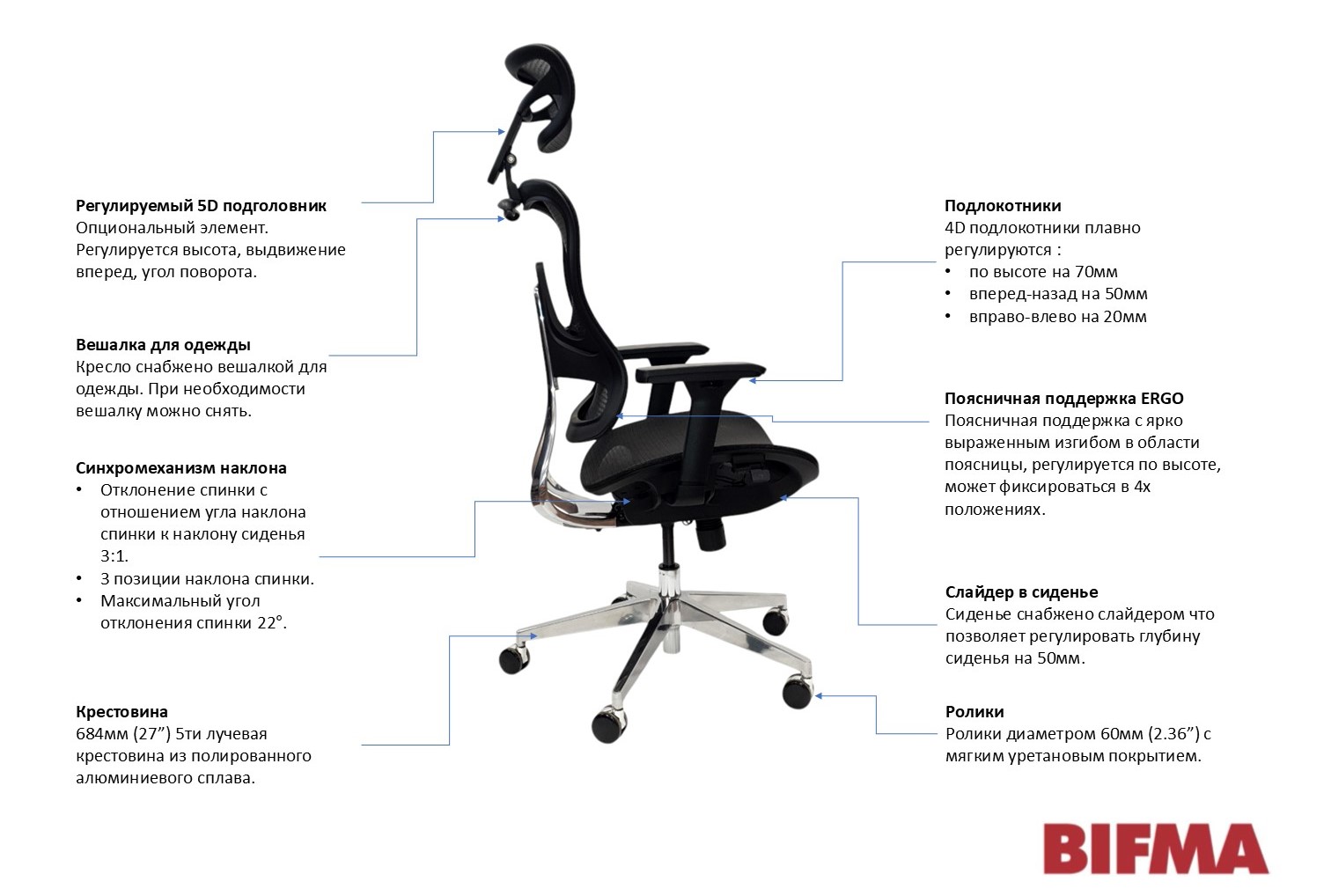 Кроме того сетчатое эргономичное кресло Expert Ergo FLY имеет: