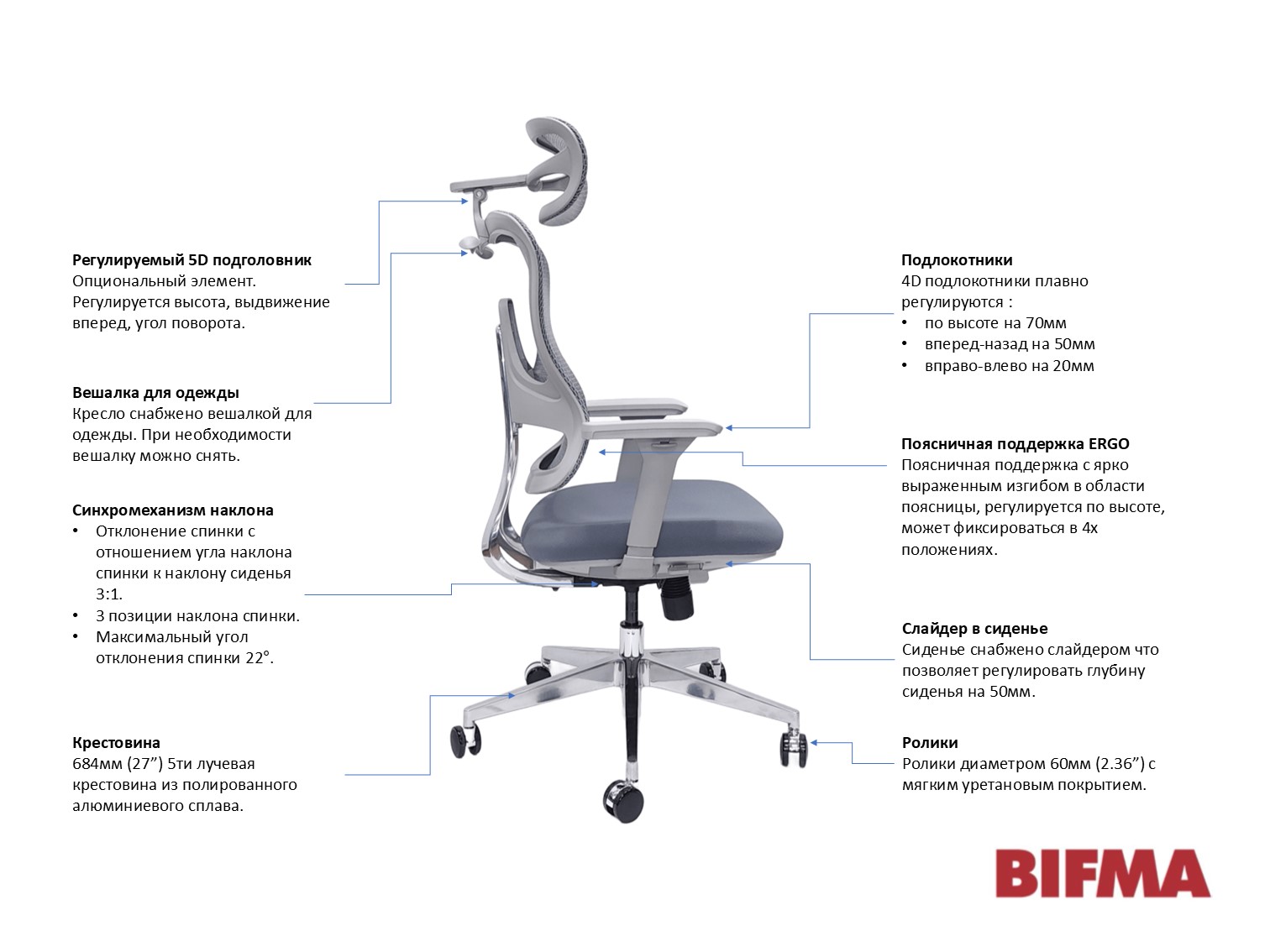 Кроме того сетчатое эргономичное кресло Expert Ergo FLY имеет: