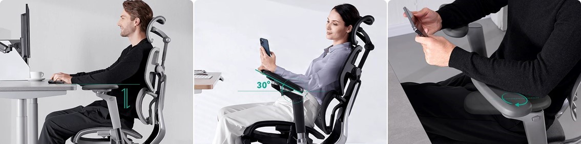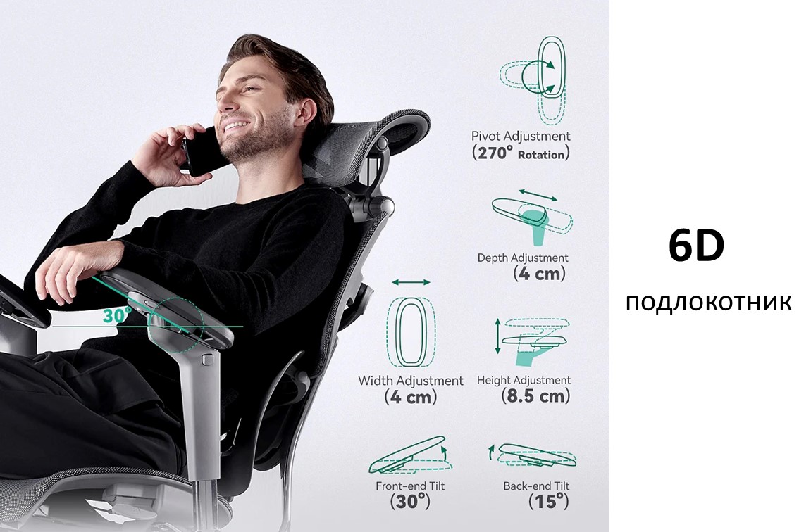 Уникальные подлокотники с механизмом 6D впервые внедрены в данной модели компьютерного эргономичного кресла. Эта инновационная функция позволит вам легко настроить подлокотники под любым углом и на любой высоте с учетом особенностей вашего тела.