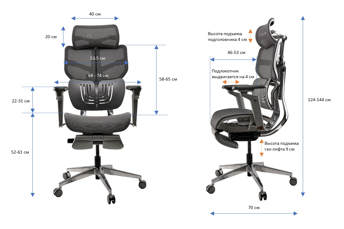 Возможность регулировки спинки эргономичного кресла по высоте и настройка степени поддержки поясничной зоны дает возможность более точной адаптации эргономичного кресла к вашей спине, учитывая все особенности строения вашего тела.