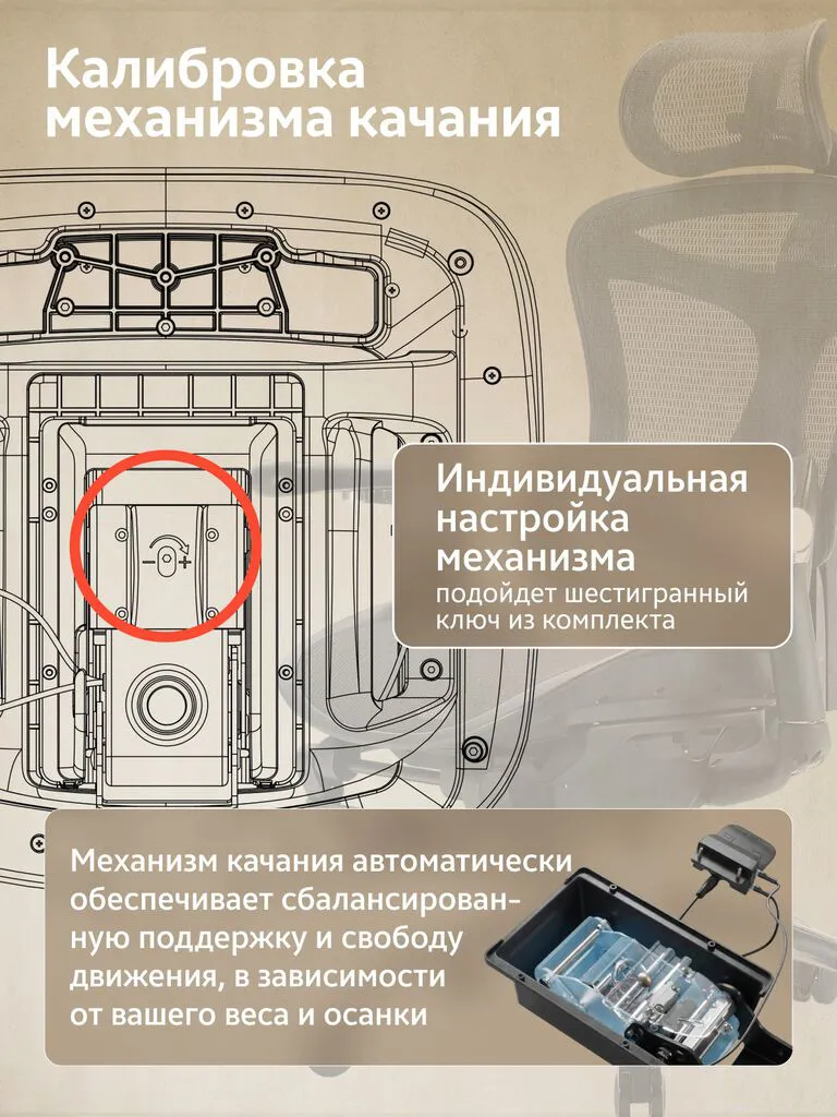 - Инновационный механизм качания с адаптацией под вес (есть ручная калибровка)