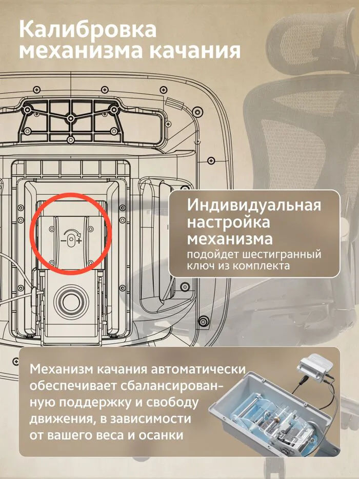 - Инновационный механизм качания с адаптацией под вес (есть ручная калибровка)
