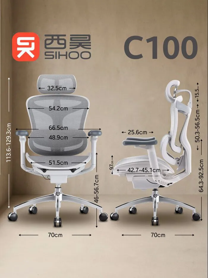 ОФИСНОЕ ЭРГОНОМИЧНОЕ КРЕСЛО SIHOO DORO-C100 (СБОРНАЯ КРЕСТОВИНА) В СЕРОМ ЦВЕТЕ