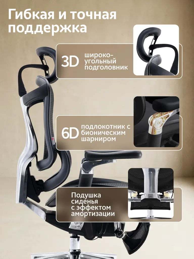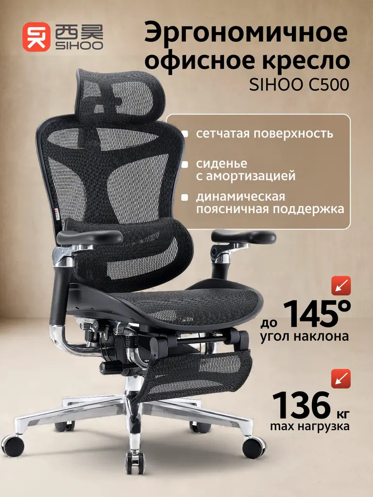 Sihoo — один из лидеров в сегменте эргономичных кресел, известный продуманной биомеханикой и качественными материалами.