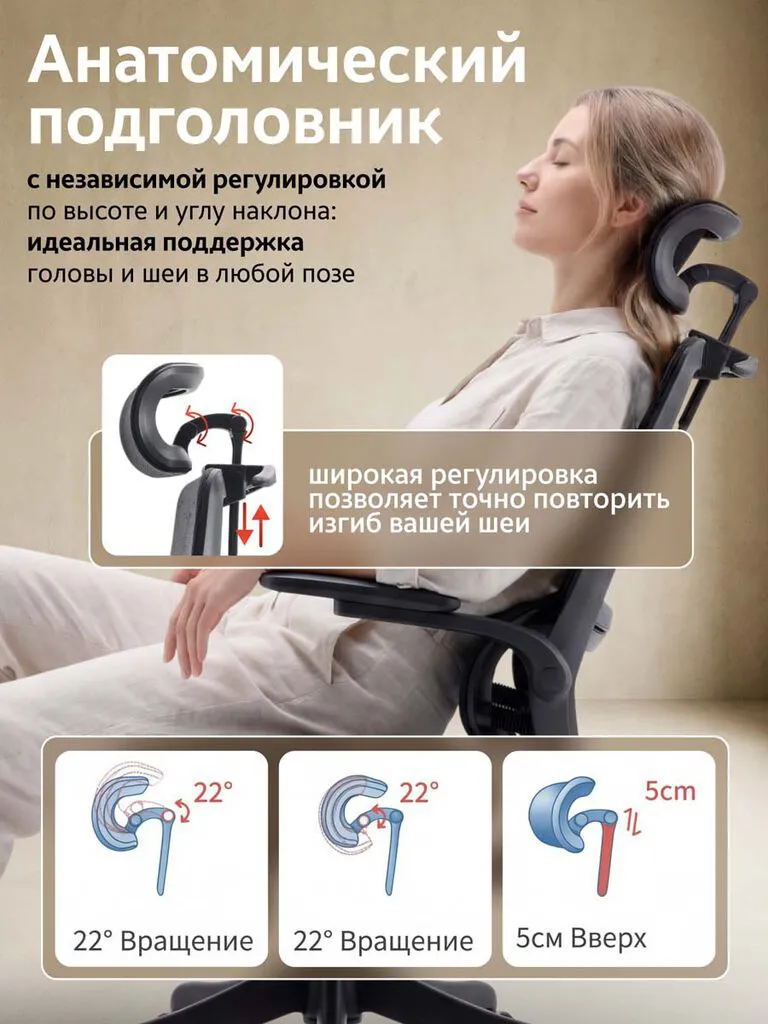 - Механический подголовник с 3 точками регулировки (угол, высота, поворот до 40°).