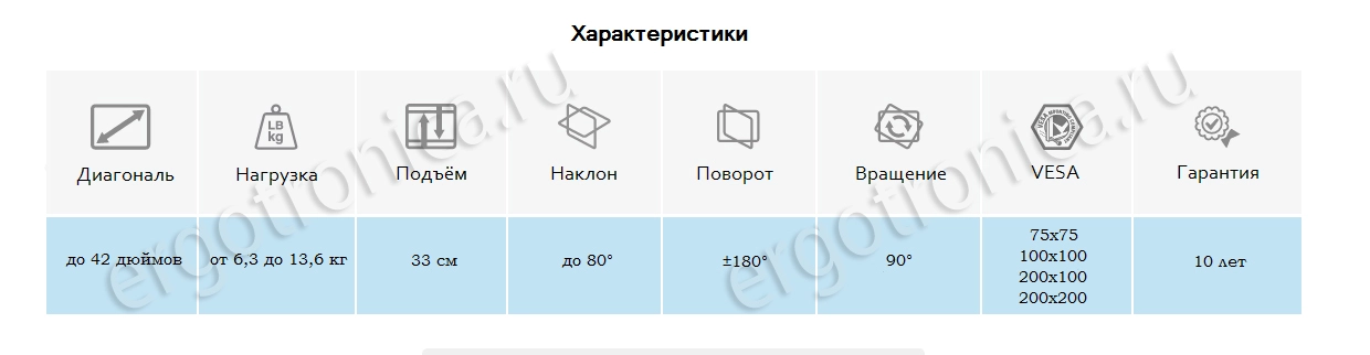 Настенное крепление для монитора MX Arm обладает грузоподъемностью в 13,6 кг, т.е. придает множество степеней свободы мониторам и телевизорам размером до 30", а также компьютерам All-In-One (всё-в-одном). Настенное крепление обеспечивает монитору множество степеней свободы в различных плоскостях, а также настройку высоты положения экрана в пределах 13 см и приближение\удаление монитора в пределах 42 см (к себе\от себя).