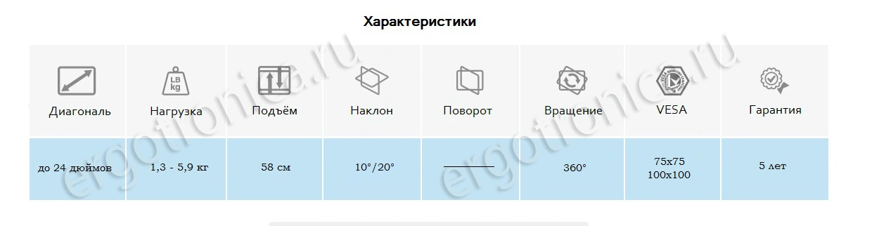 - обеспечивает плавную и лёгкую настройку положения компьютерного оборудования минимальным усилием руки;