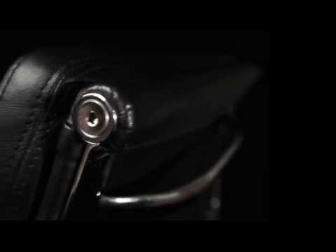 Основные материалы, которые использовались в конструкции, - это хромированный алюминий для каркаса и натуральная кожа в качестве обивки.