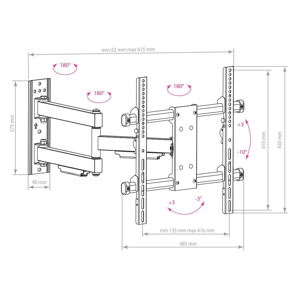 Надёжная стальная конструкция и большой вынос от стены (615 мм)