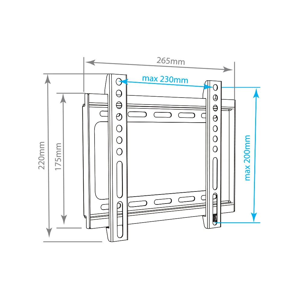 VESA: 50 x 50, 75 x 75, 100 x 100, 200 x 100, 200 x 200