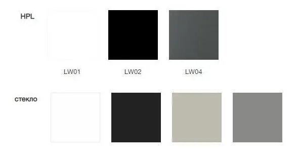 Композитным материалом столешницы выступает высоконапорный ламинат HPL (High Pressure Laminate). Данный вариант является очень износойстойчивым и практически неприхотлив к постоянной уборке. Его высокая ударная прочность позволяет выдерживать огромное давление на свою поверхность совершенно без последствий. Также как и стекло, столешница из ламината HPL легко переносит перепады температур и её совершенно не беспокоит повышенная влажность.
