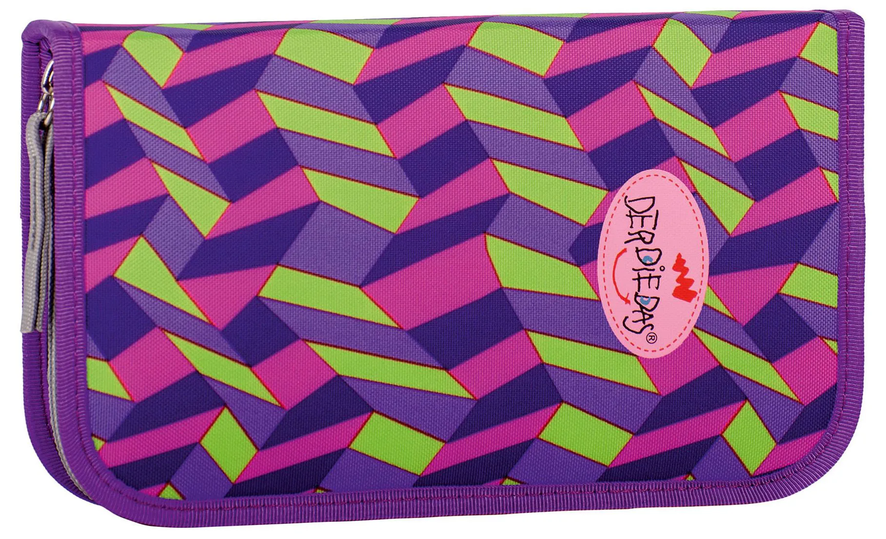 Закрытый пенал с наполнением на молнии, в наличии дополнительный клапан. Размер 20 х 13,5 х 2,5 см. В пенал входят: чернографитный карандаш - 2 шт., цветной карандаш - 15 шт., линейка 16 см - 1 шт., ластик - 1 шт., точилка - 1 шт., расписание уроков - 1 шт., отделение для ручки, мини-кошелек на липучке.